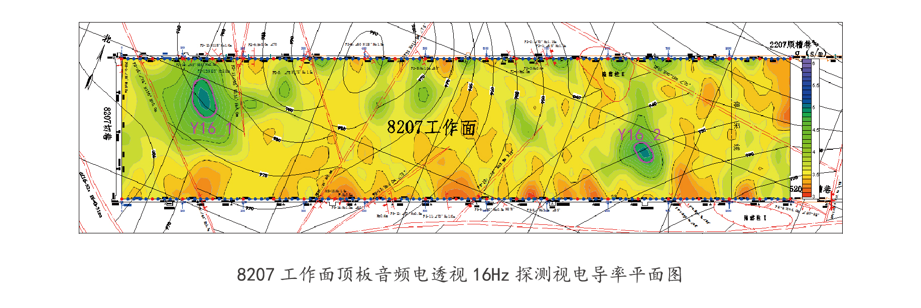 某矿水文地质条件中等。为了查明8207工作面顶板富水性情况,矿方委托我公司在8207工作面进行顶板音频电透视探测,圈定富水区位置及范围,为探、放水提供依据。