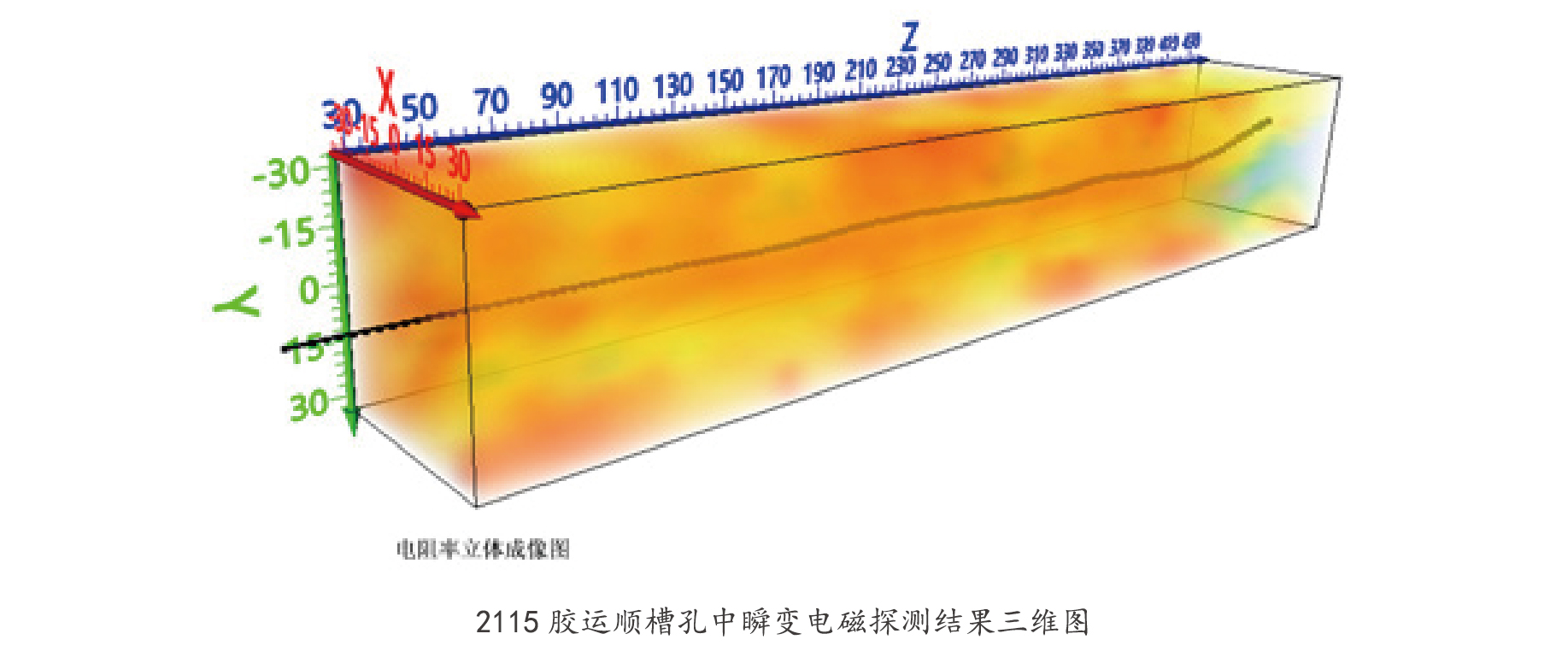 某矿2115胶运顺槽在掘进过程中,时有顶板淋水现象。为确保掘进安全,急需査明掘进巷道迎头前方富水情况,矿方委托我公司采用钻孔瞬变电磁进行巷道超前探测。