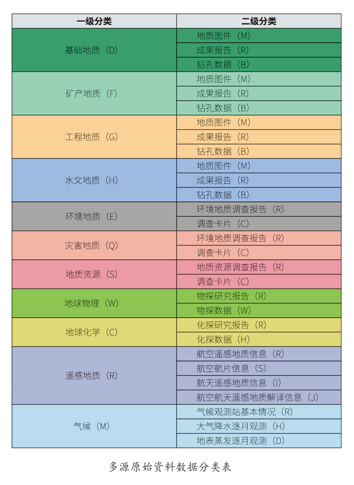 根据实际工作情况和数据内容,数据类型大致可分为基础地质、矿产地质、工程地质、水文地质、环境地质、灾害地质、地质资源、地球物理、地球化学、遥感地质和气候11个一级类别。